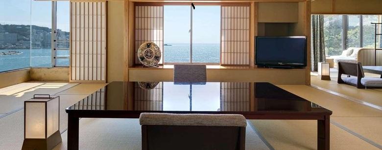 12.5帖と8帖の二間続き。海の眺めはロイヤルフロアーならでは。 のんびりゆったりと時間を過ごしていただけます。 |
