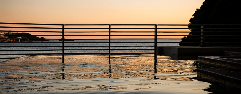 眺望の湯「潮風」美しい白良浜を一望する開放的な露天風呂で、潮騒に耳を傾けながらお過ごし頂ける温泉です。