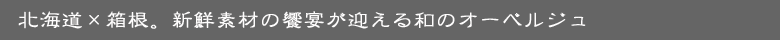 箱根の地に北海道より北の風吹き込む『和のオーベルジュ』が誕生。 我が家に居るような心温まるおもてなしとお寛ぎの時間。和会席を心行くまでご堪能くださいませ。