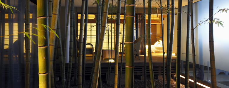 月光照らす竹林はまるで昔話を思い出させ、朝日が差す竹林はなんともやさしく疲れた日常を忘却させてくれる自然のビタミン剤。竹葉の囁きが、安らかな眠りへと誘います。