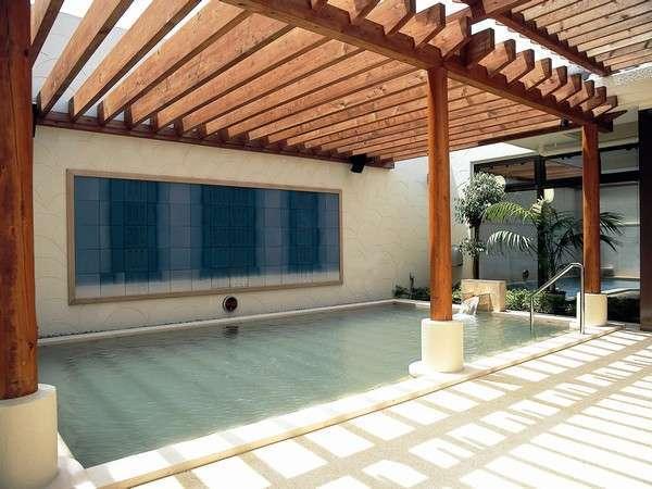 [露天風呂]ちゅらーゆはホテルに隣接している建物。赤瓦と白い...