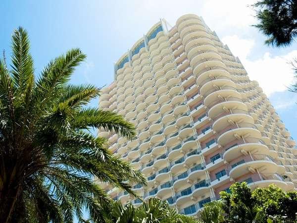 [昼:夏]ホテル玄関から見上げた外観。24階建ての沖縄最高層...