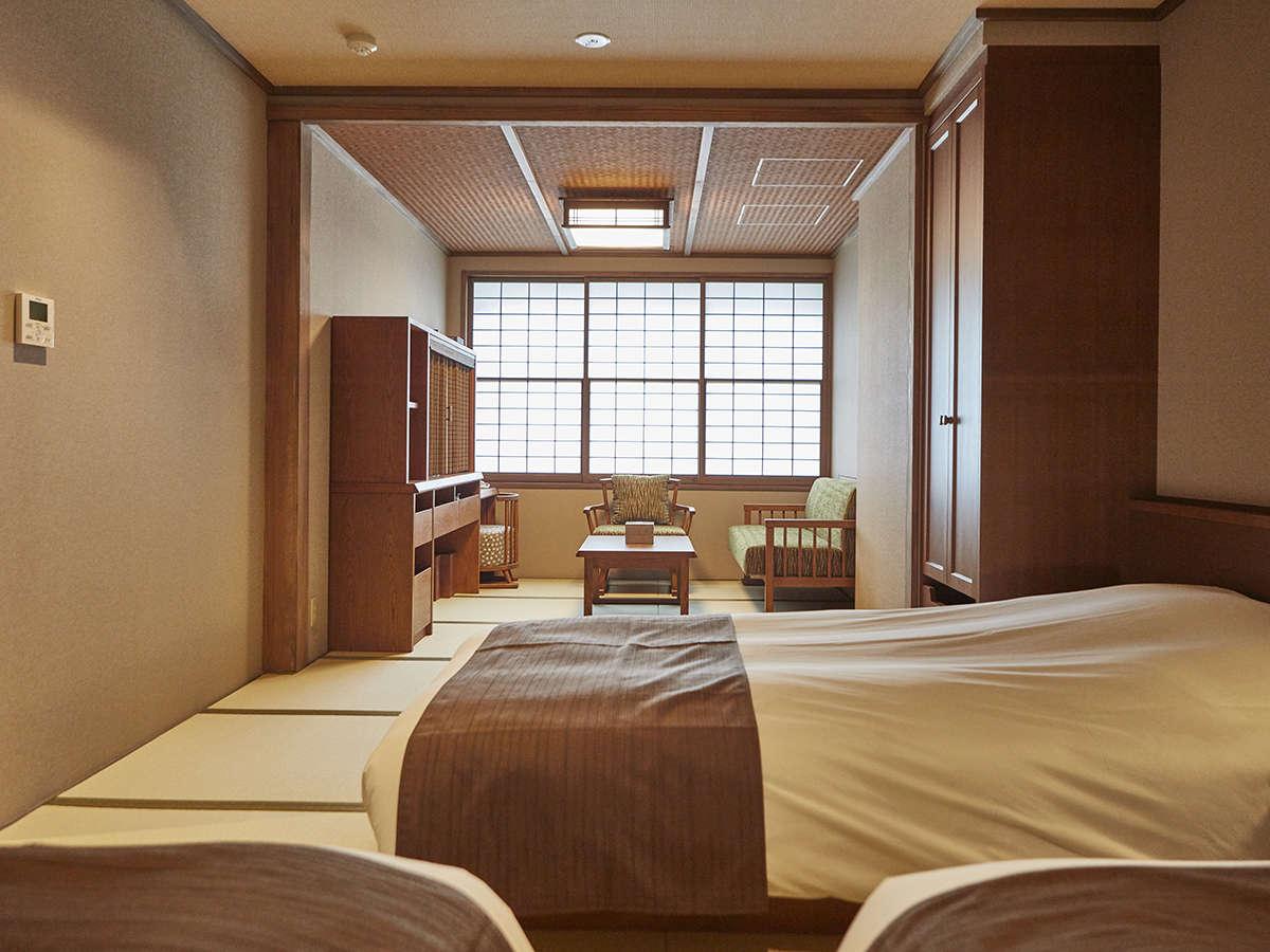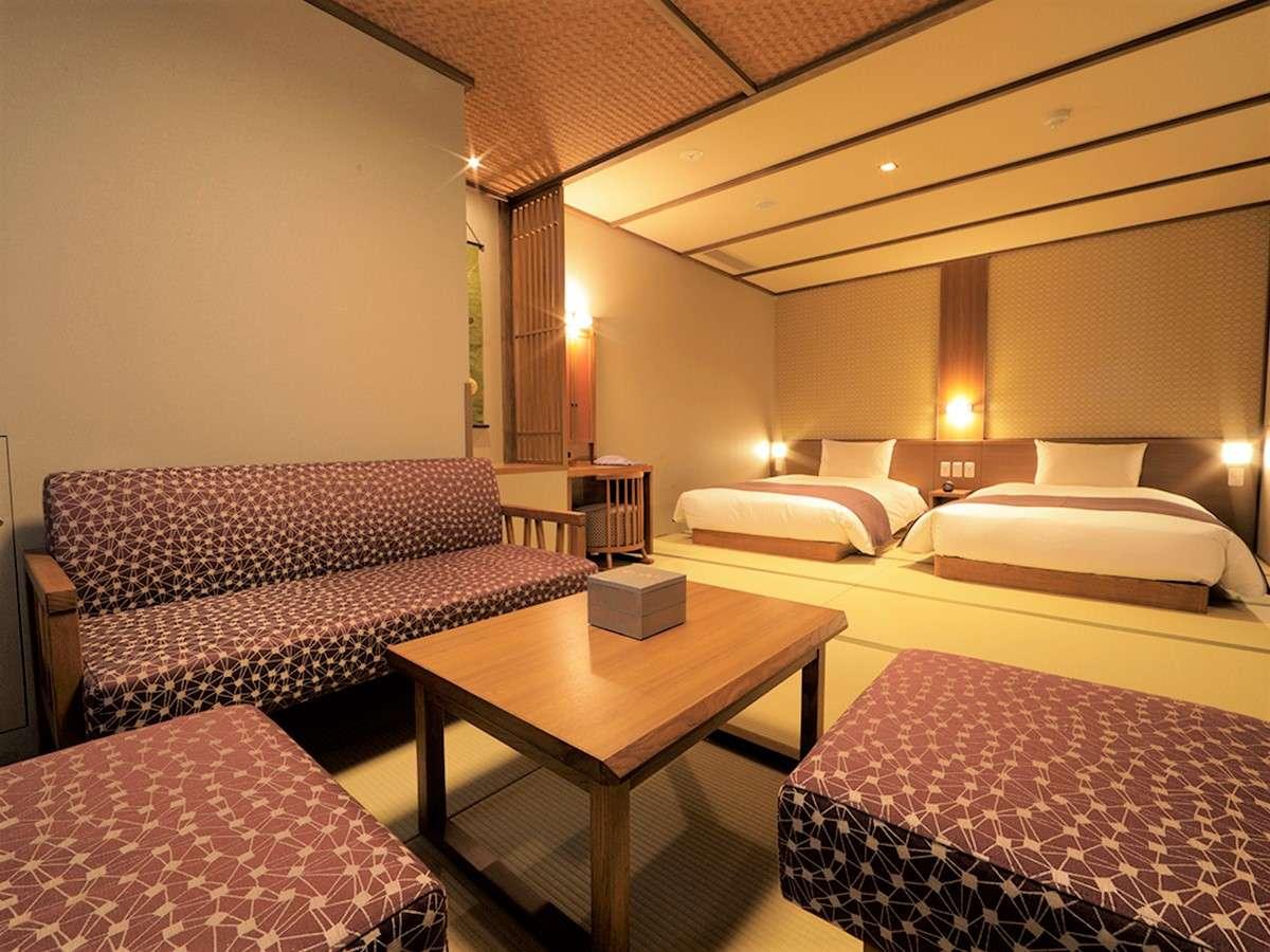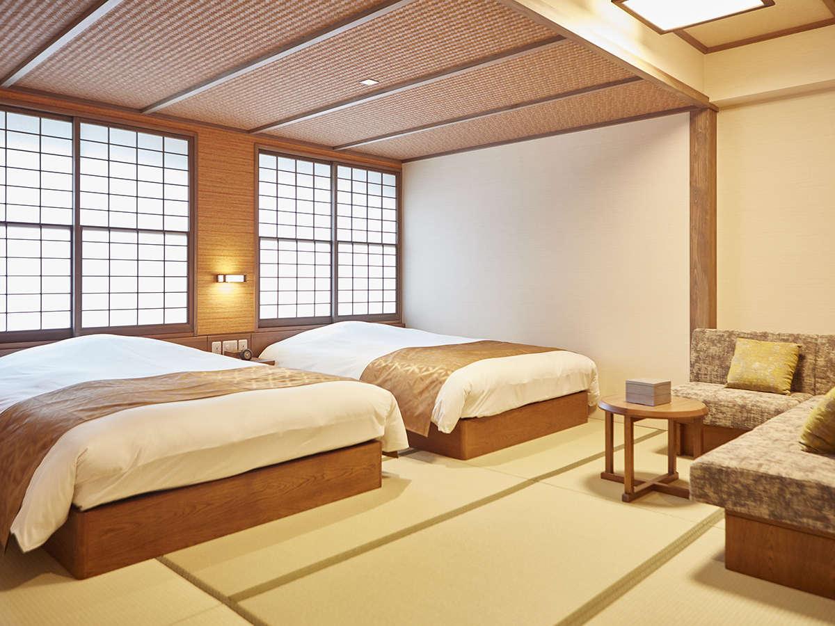 [和洋室]【ユニバーサルツイン】・居間・広いベットは高めの作...