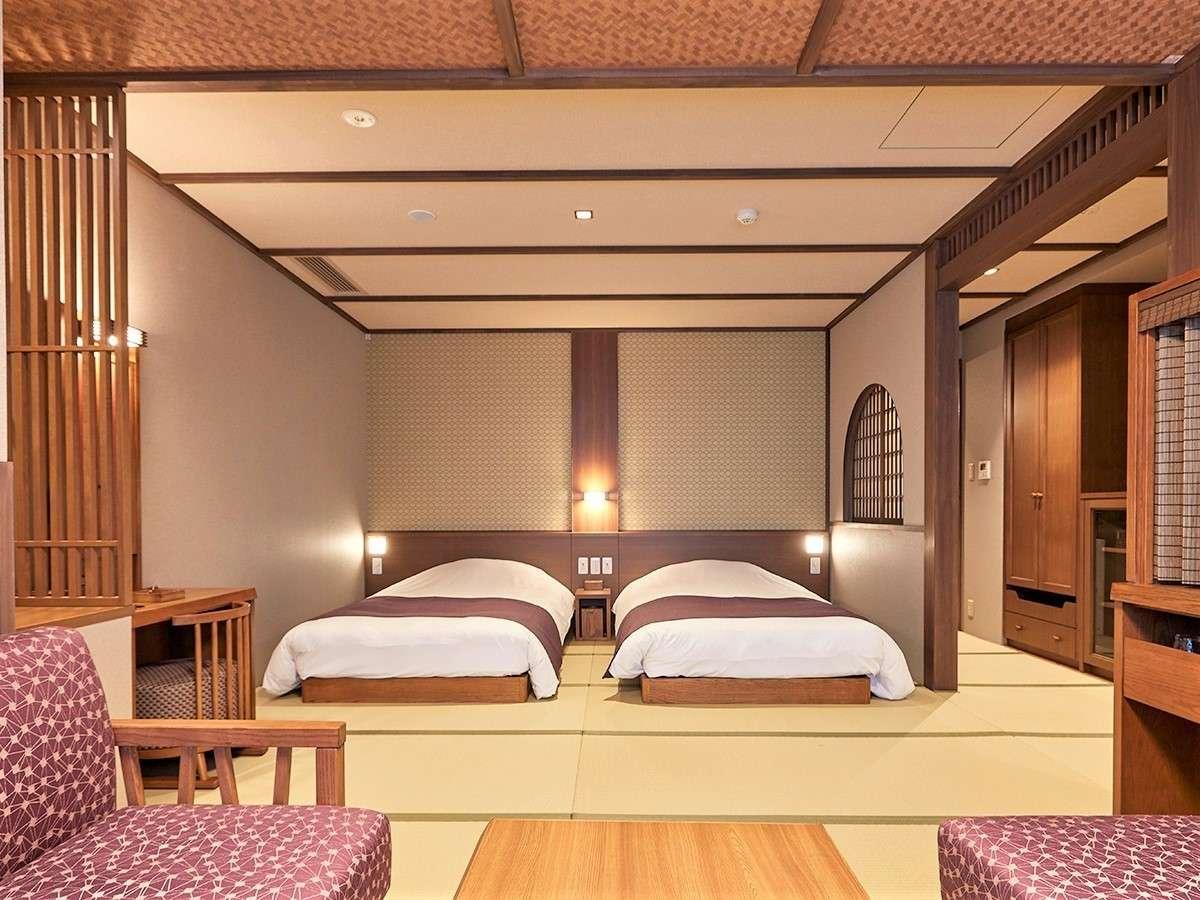 [洋室:スイート]【和スイート】・寝室・ベットが2台、居間と...
