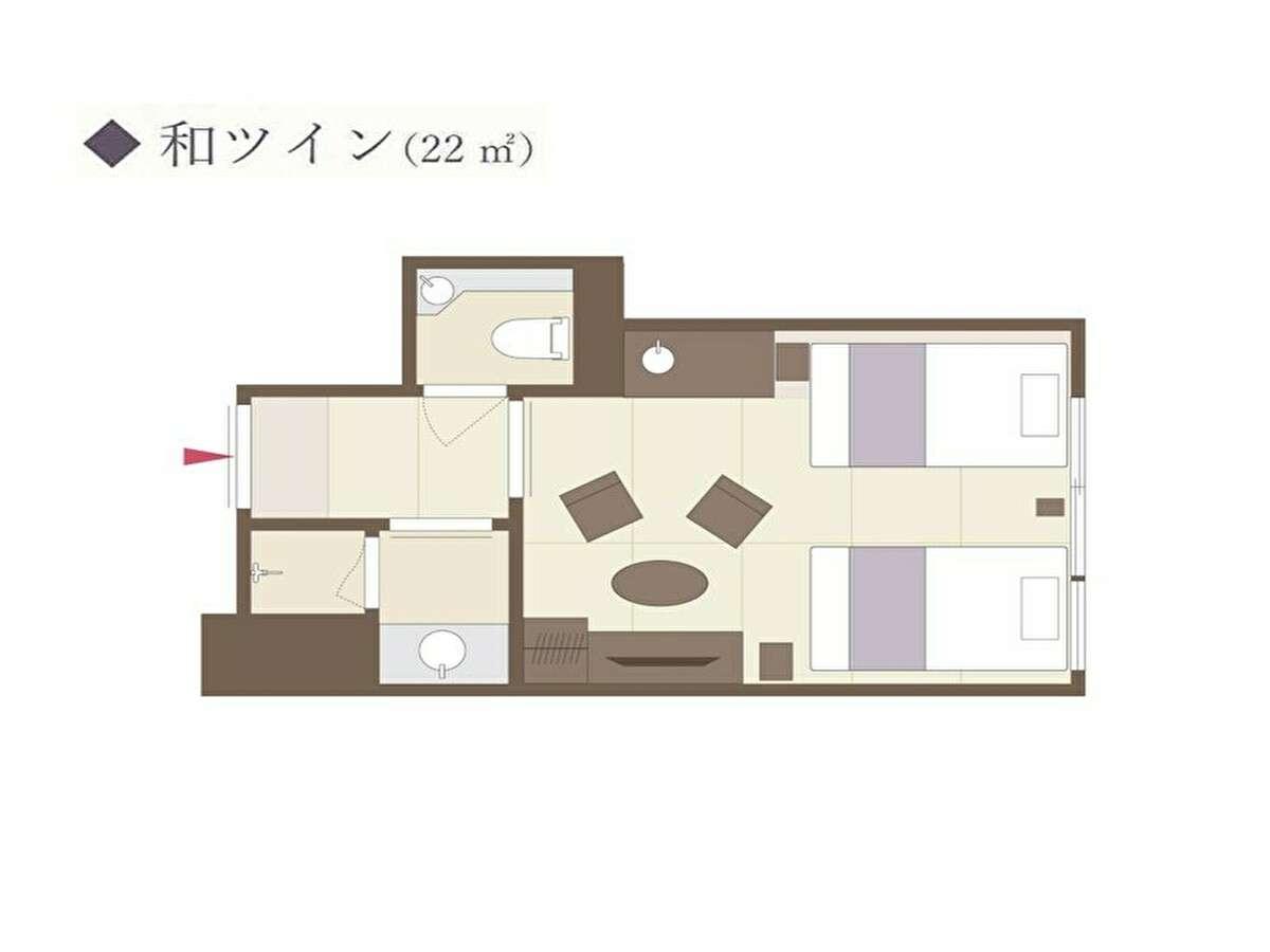 [洋室:ツイン]《間取り図》和ツイン22平米