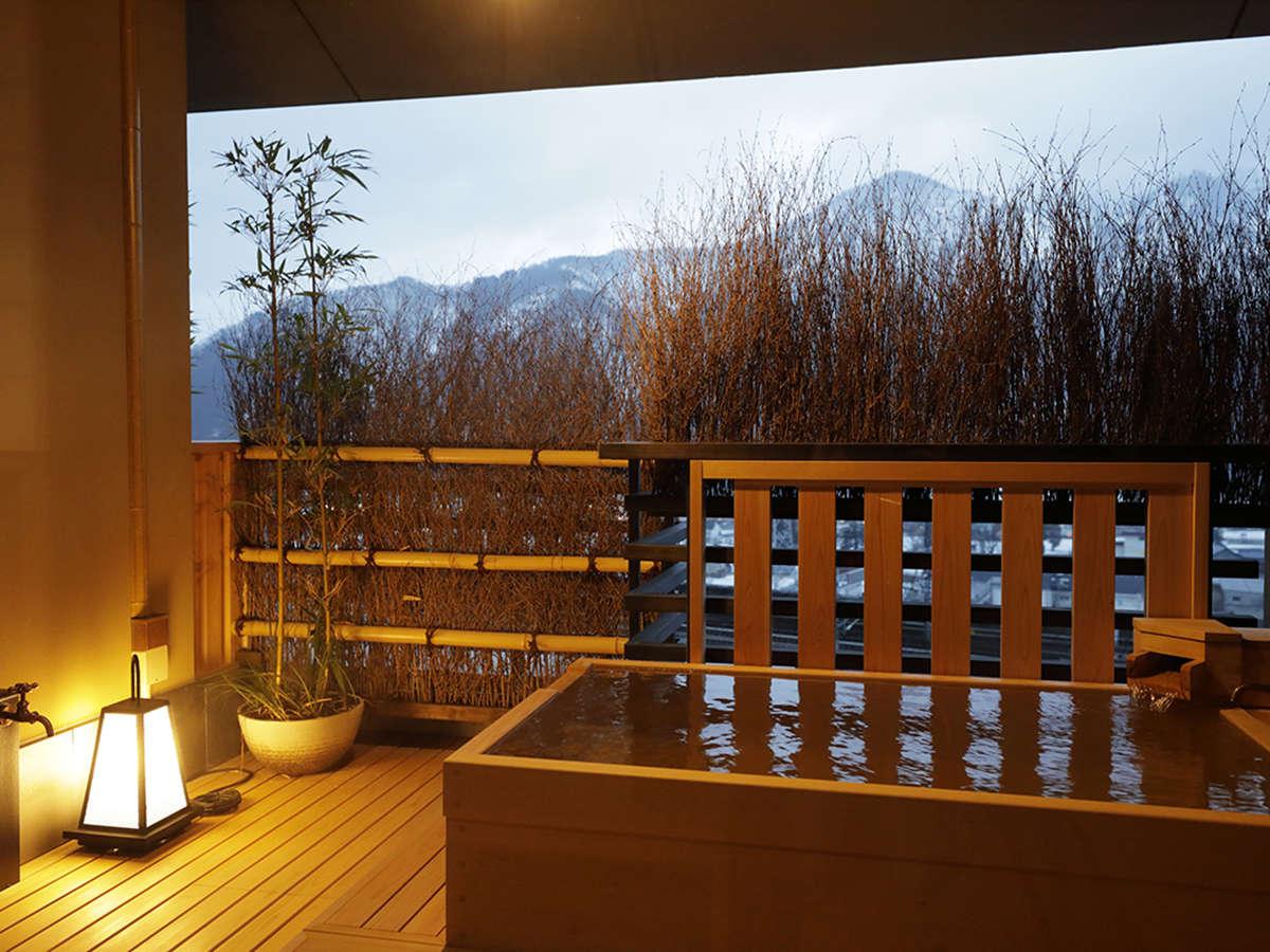 [洋室:スイート]【和スイート】・客室風呂・檜の湯船につかり...