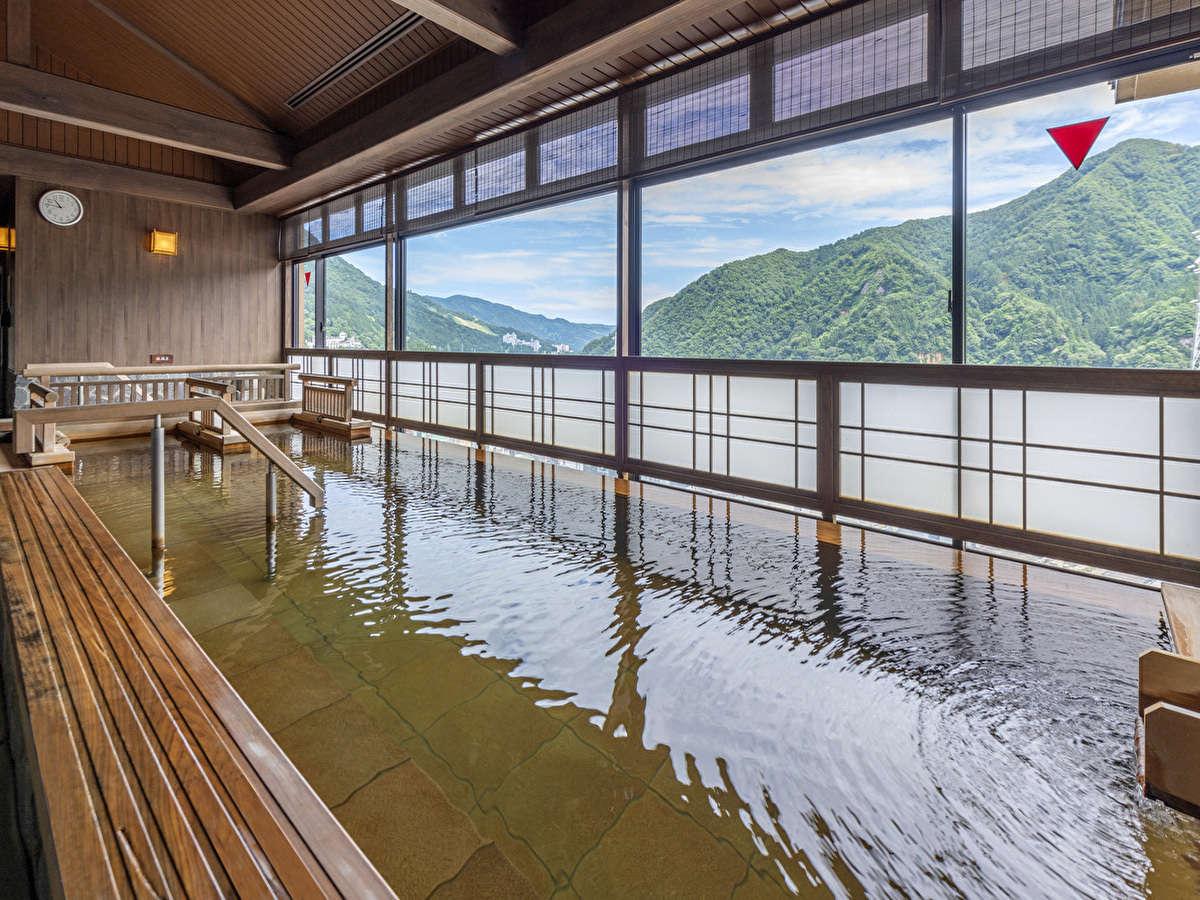 [その他]【大浴場】内湯:昼・朝風呂に入ると山側の景色が綺麗...