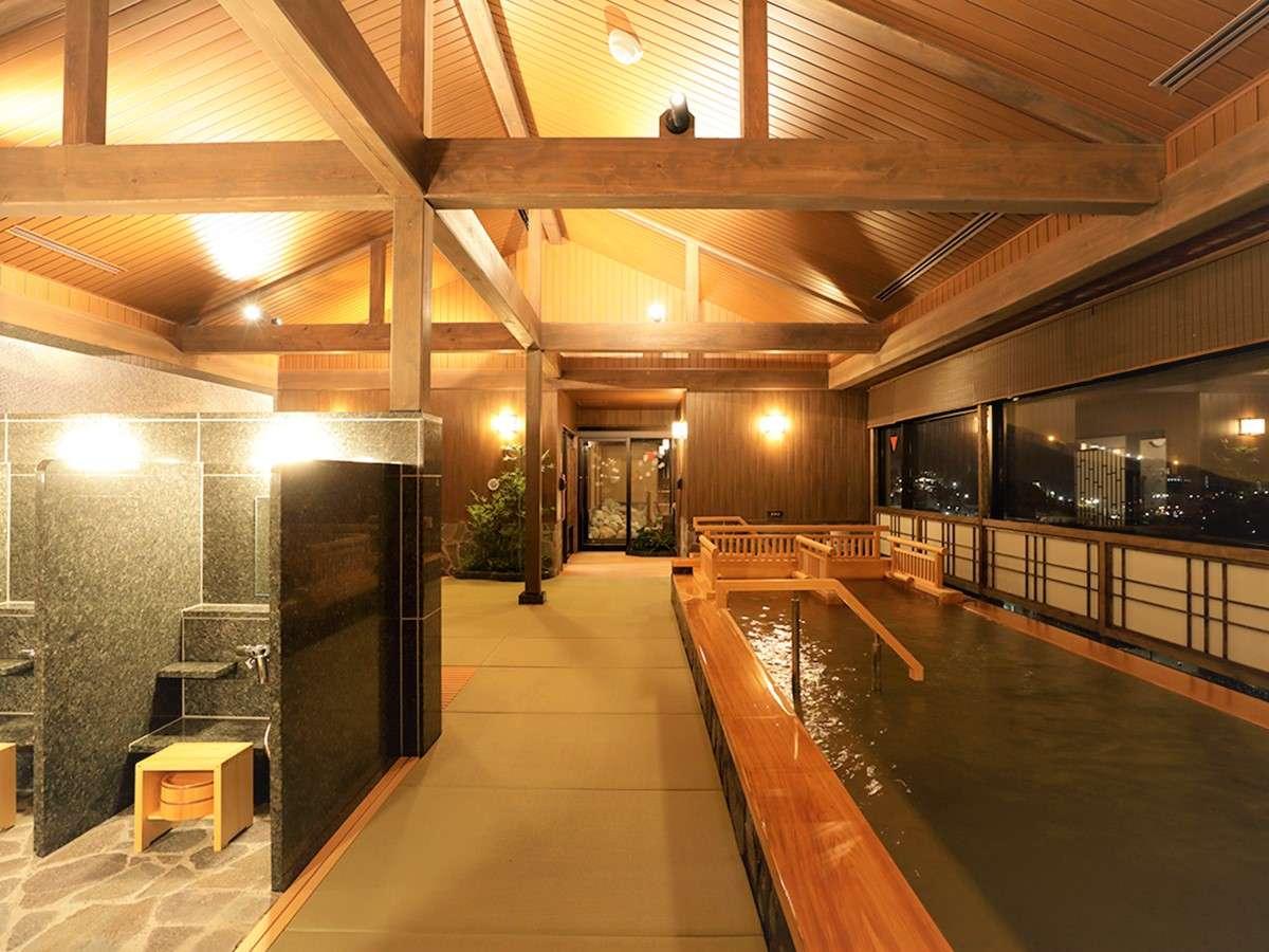 [その他]【大浴場】内湯:夜・畳敷きに天井は木のぬくもり感じ...