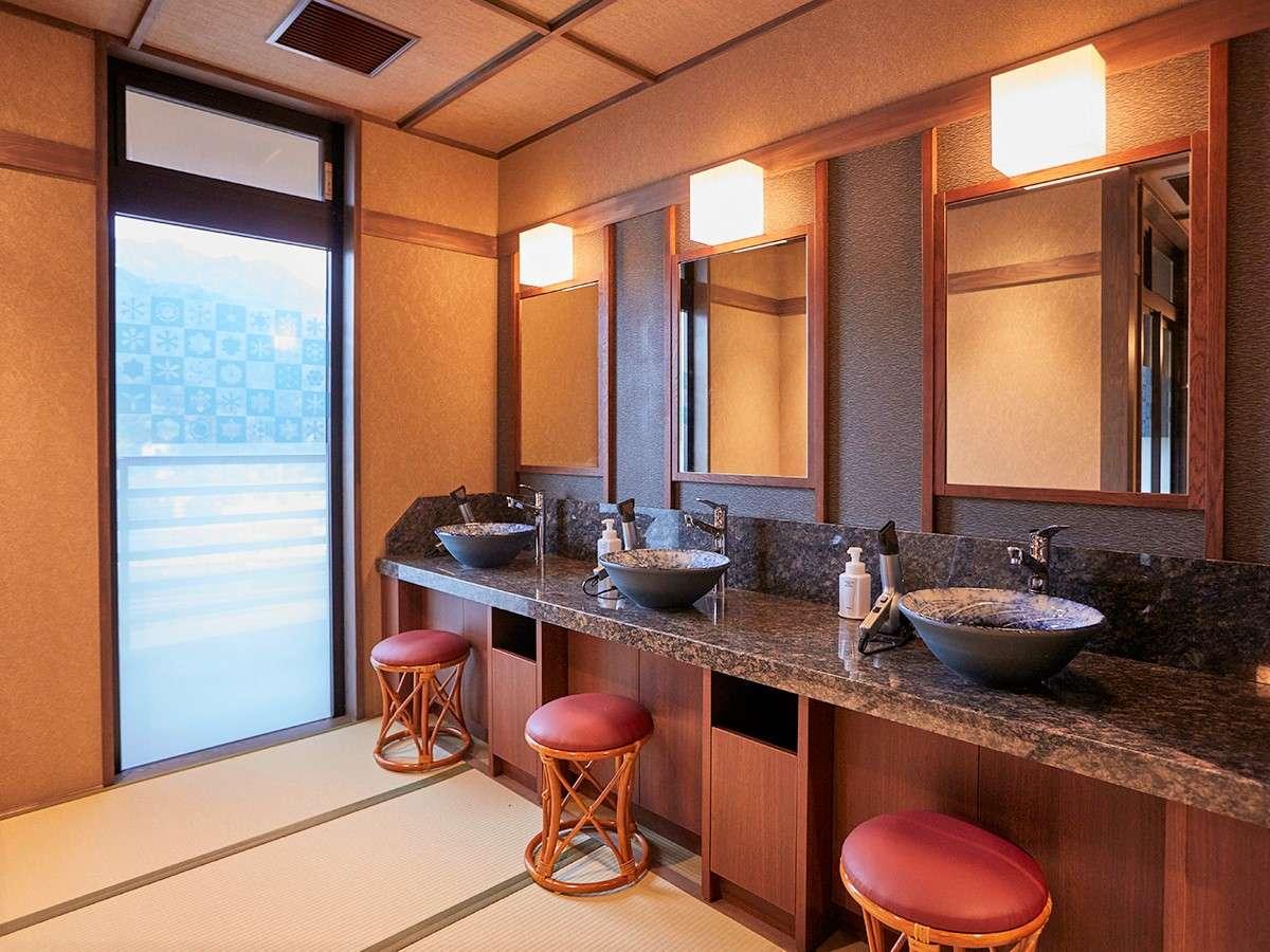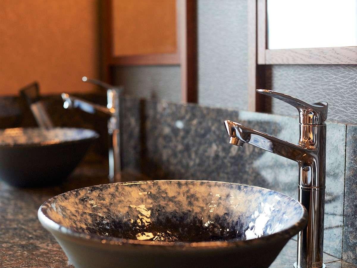 [その他]【大浴場】脱衣所・陶器の洗面ボールは藍色ベースでシ...