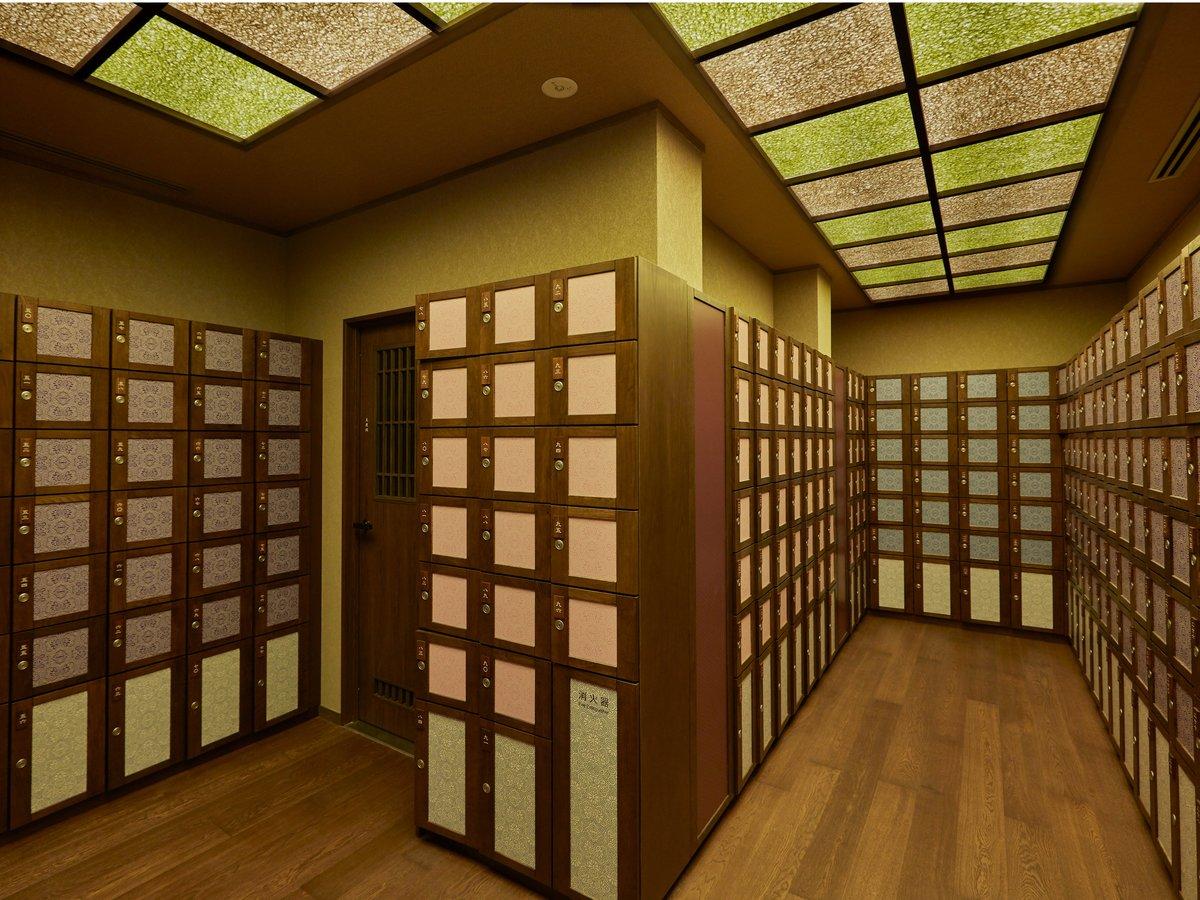 [その他]【大浴場】脱衣所・市松模様みたな更衣ロッカーに温泉...