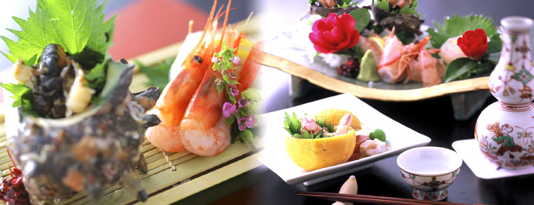 「四季折々、風味豊かな旬の恵みを持ち味を活かして召し上がっていただく…。」それが旅亭萬葉の料理の基本です。 |