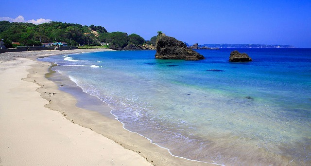 入り江にできた静かなビーチ、外浦海水浴場