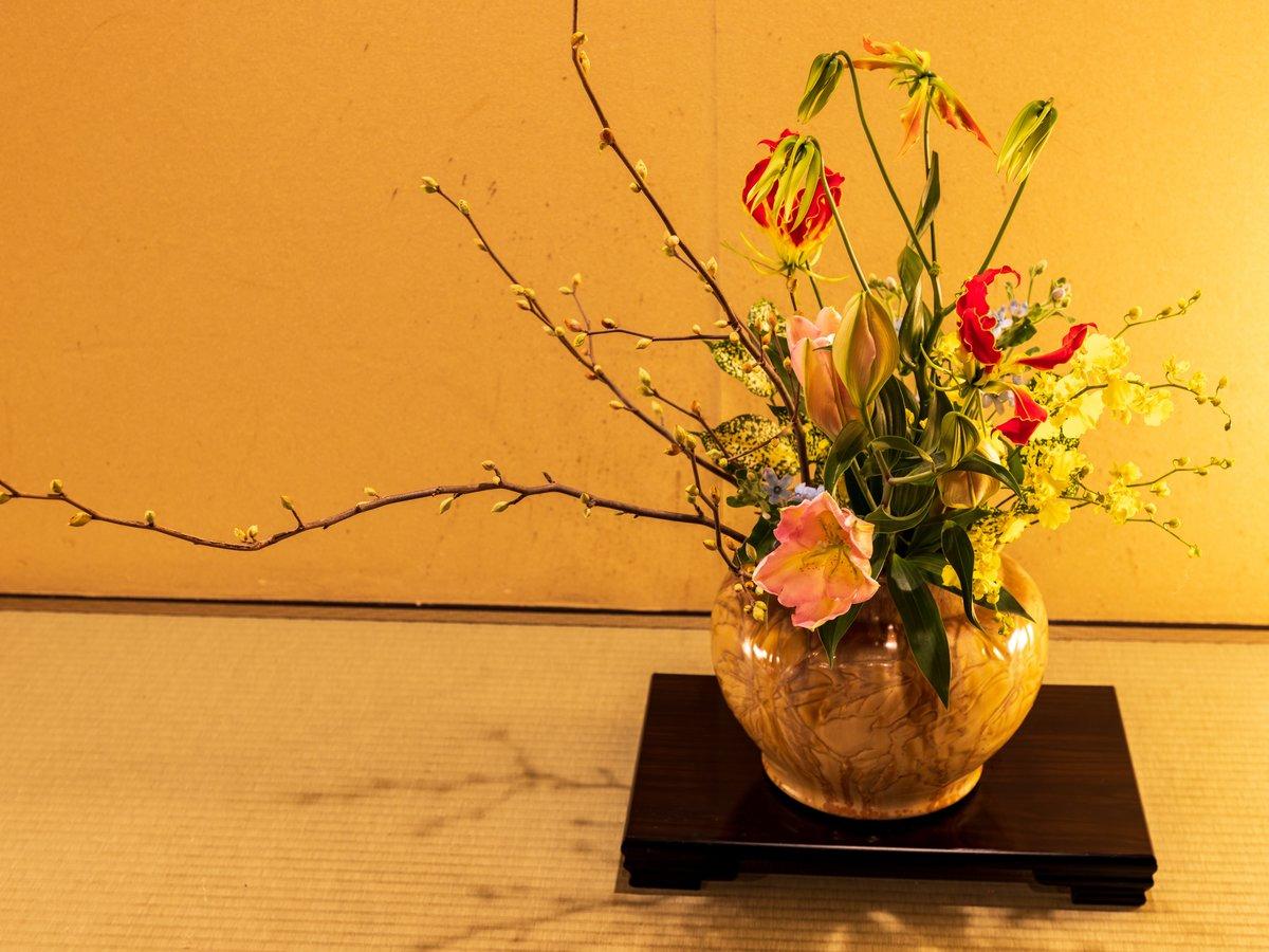 館内には四季折々の生花が彩りを演出しております