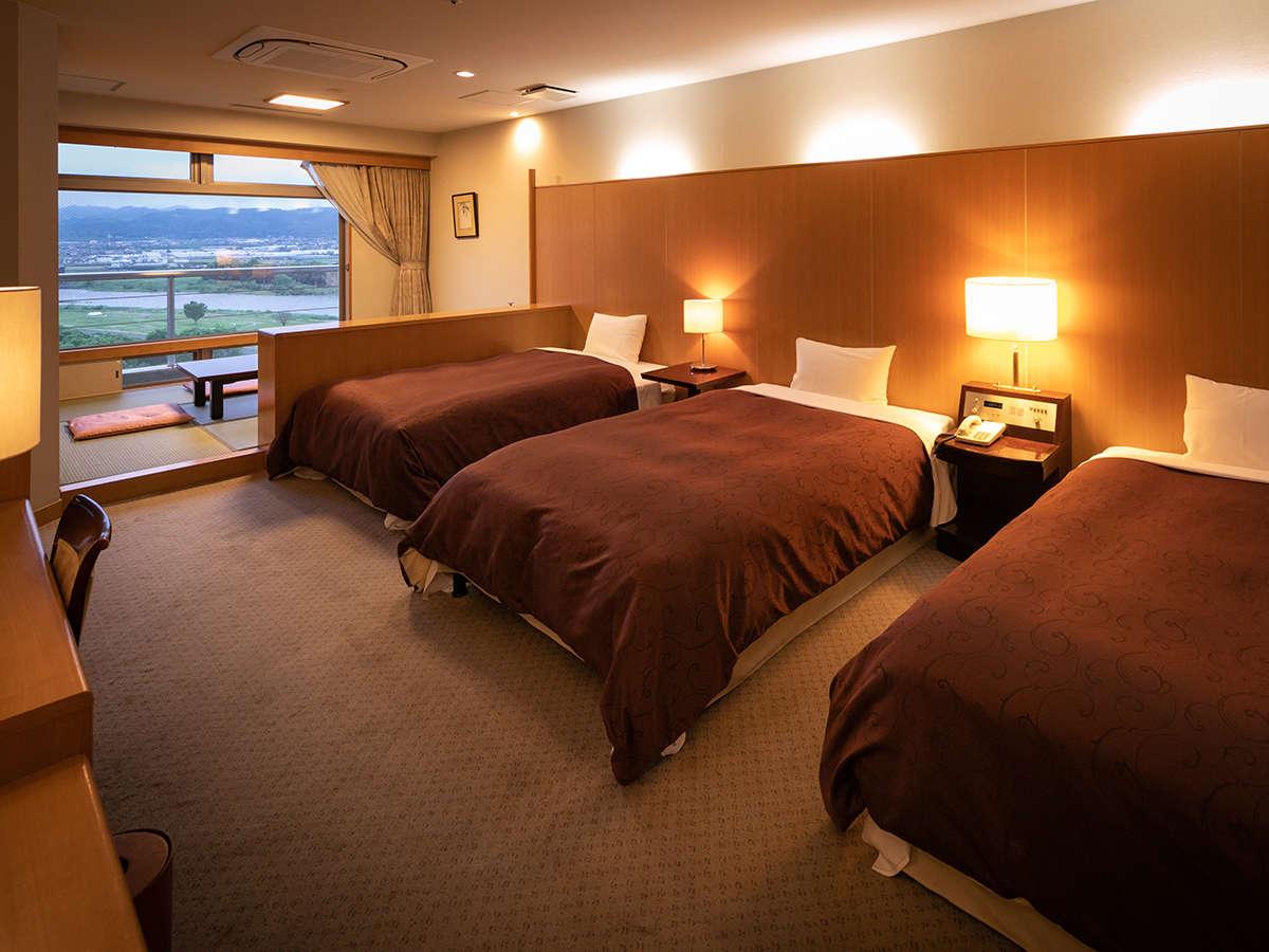 [和洋室]【中央館・和洋室】広めのベッドが2~3台と窓際には...