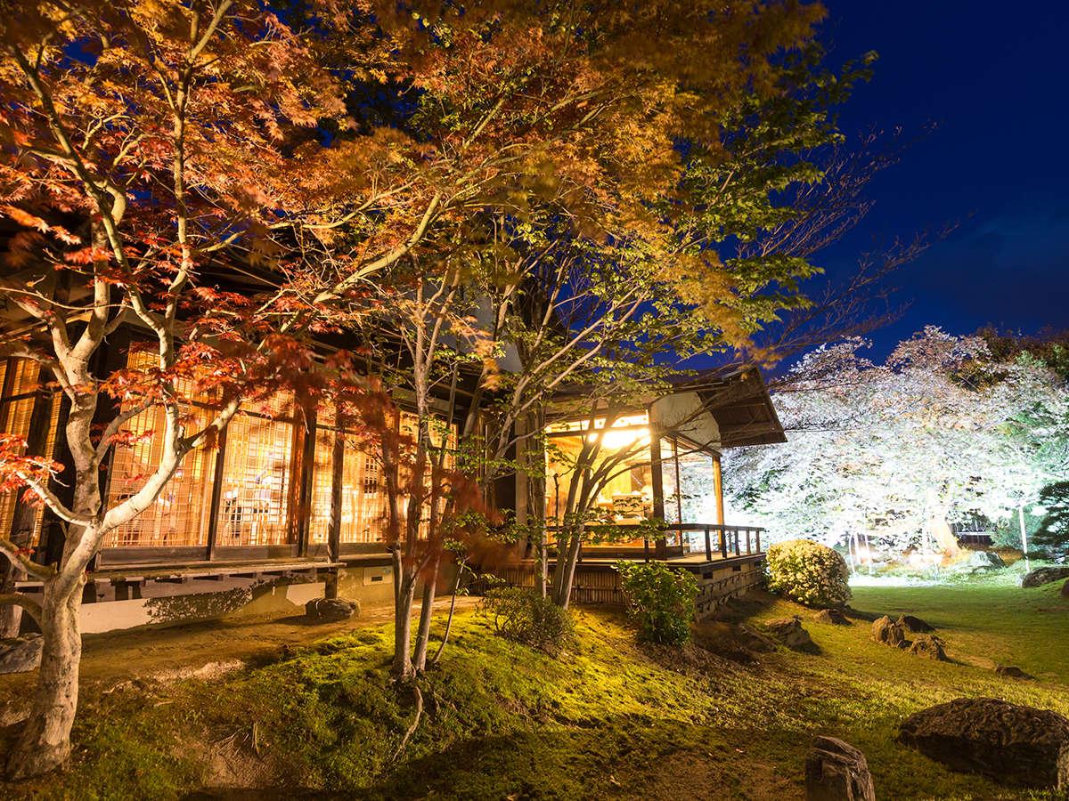 [レストラン・バー]離れレストラン寿泉では夕食時にはライトア...